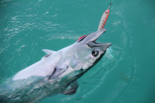 Los primeros lances no tardaron en obtener sus resultados en forma de bonito, y una tras otra se iban sucediendo las picadas de estos bravos peces.